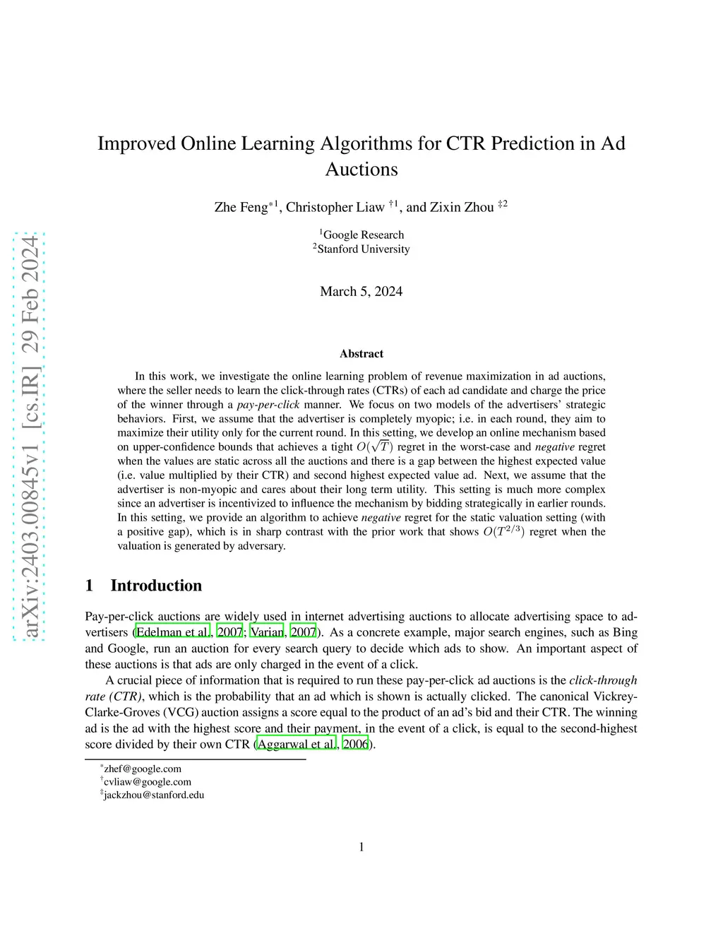 Improved Online Learning Algorithms for CTR Prediction in Ad Auctions
