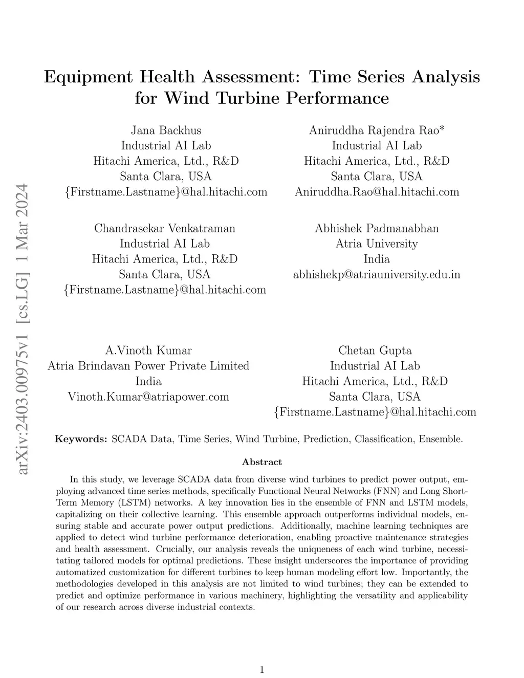 Equipment Health Assessment: Time Series Analysis for Wind Turbine