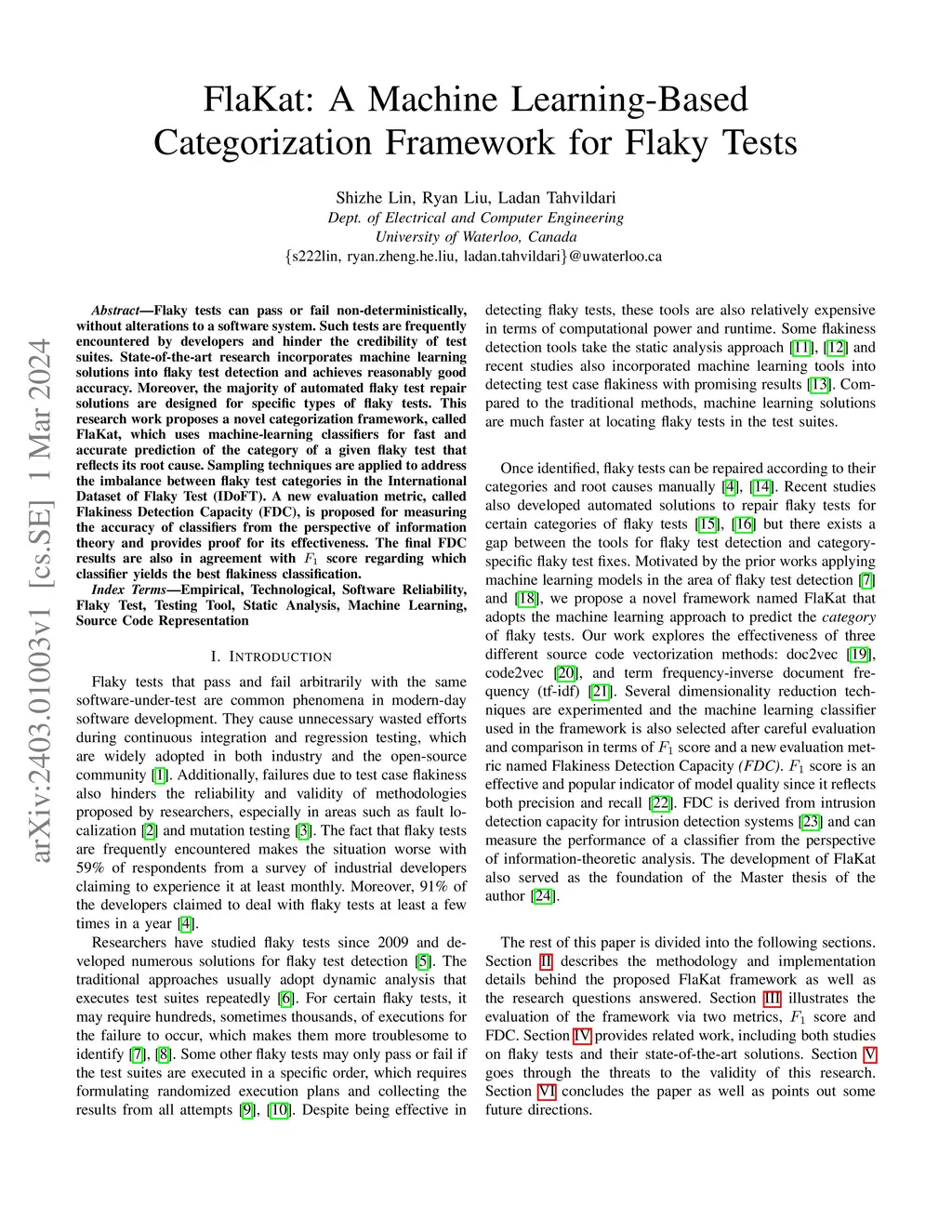 FlaKat: A Machine Learning-Based Categorization Framework for Flaky