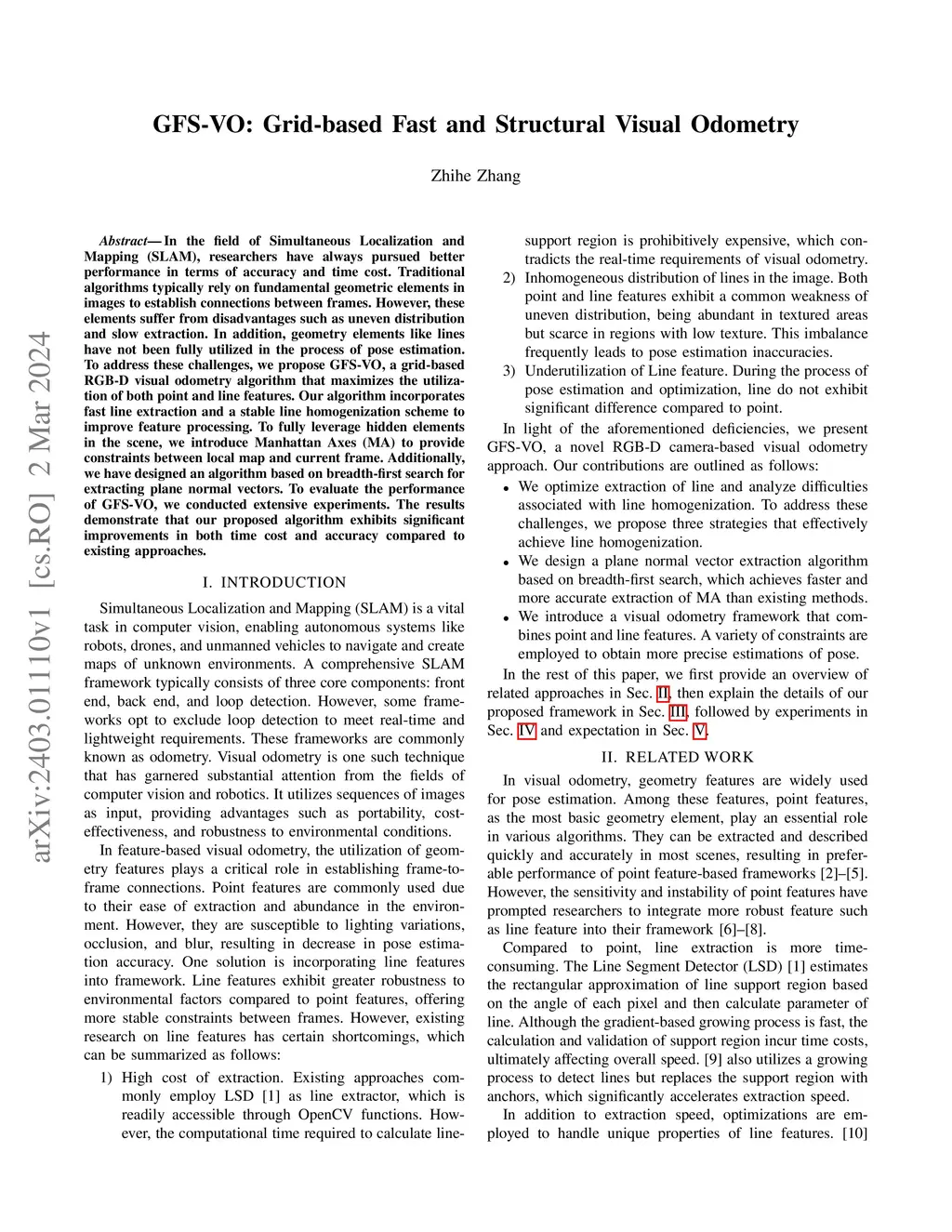 In the field of Simultaneous Localization and Mapping (SLAM), researchers have always pursued better performance in terms of accuracy and time cost. Traditional algorithms typically rely on fundamental geometric elements in images to establish connections between frames. However, these elements suffer from disadvantages such as uneven distribution and slow extraction. In addition, geometry elements like lines have not been fully utilized in the process of pose estimation. To address these challenges, we propose GFS-VO, a grid-based RGB-D visual odometry algorithm that maximizes the utilization of both point and line features. Our algorithm incorporates fast line extraction and a stable line homogenization scheme to improve feature processing. To fully leverage hidden elements in the scene, we introduce Manhattan Axes (MA) to provide constraints between local map and current frame. Additionally, we have designed an algorithm based on breadth-first search for extracting plane normal vectors. To evaluate the performance of GFS-VO, we conducted extensive experiments. The results demonstrate that our proposed algorithm exhibits significant improvements in both time cost and accuracy compared to existing approaches.
