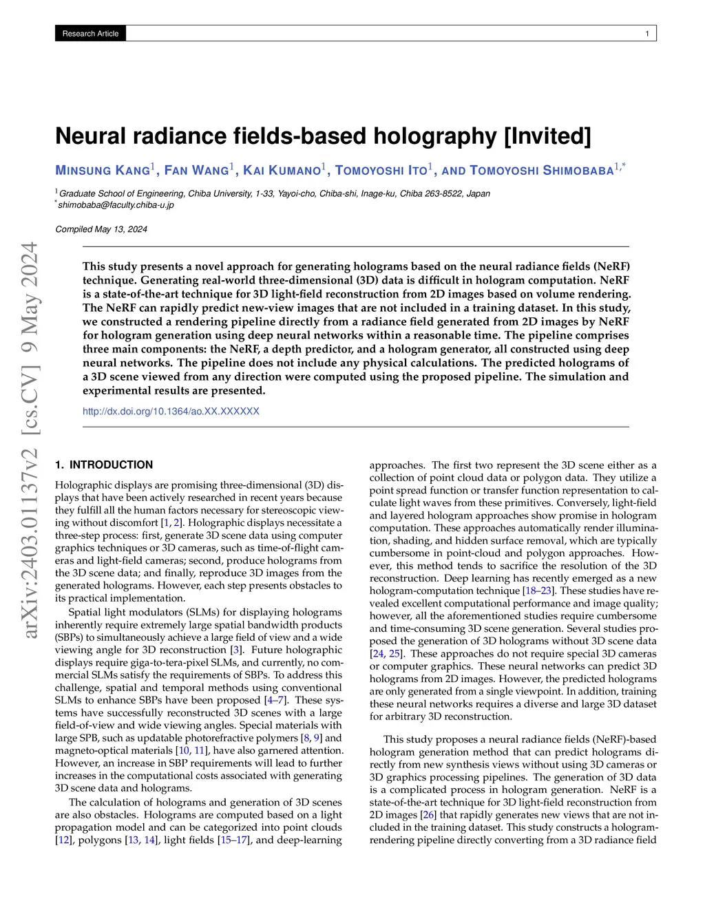 Neural radiance fields-based holography [Invited]
