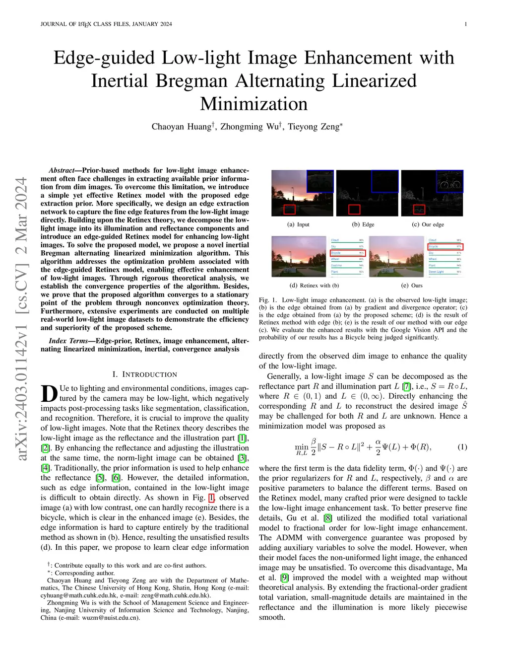 Edge-guided Low-light Image Enhancement with Inertial Bregman Alternating Linearized Minimization