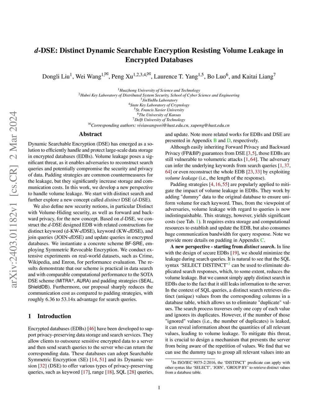 d-DSE: Distinct Dynamic Searchable Encryption Resisting Volume Leakage