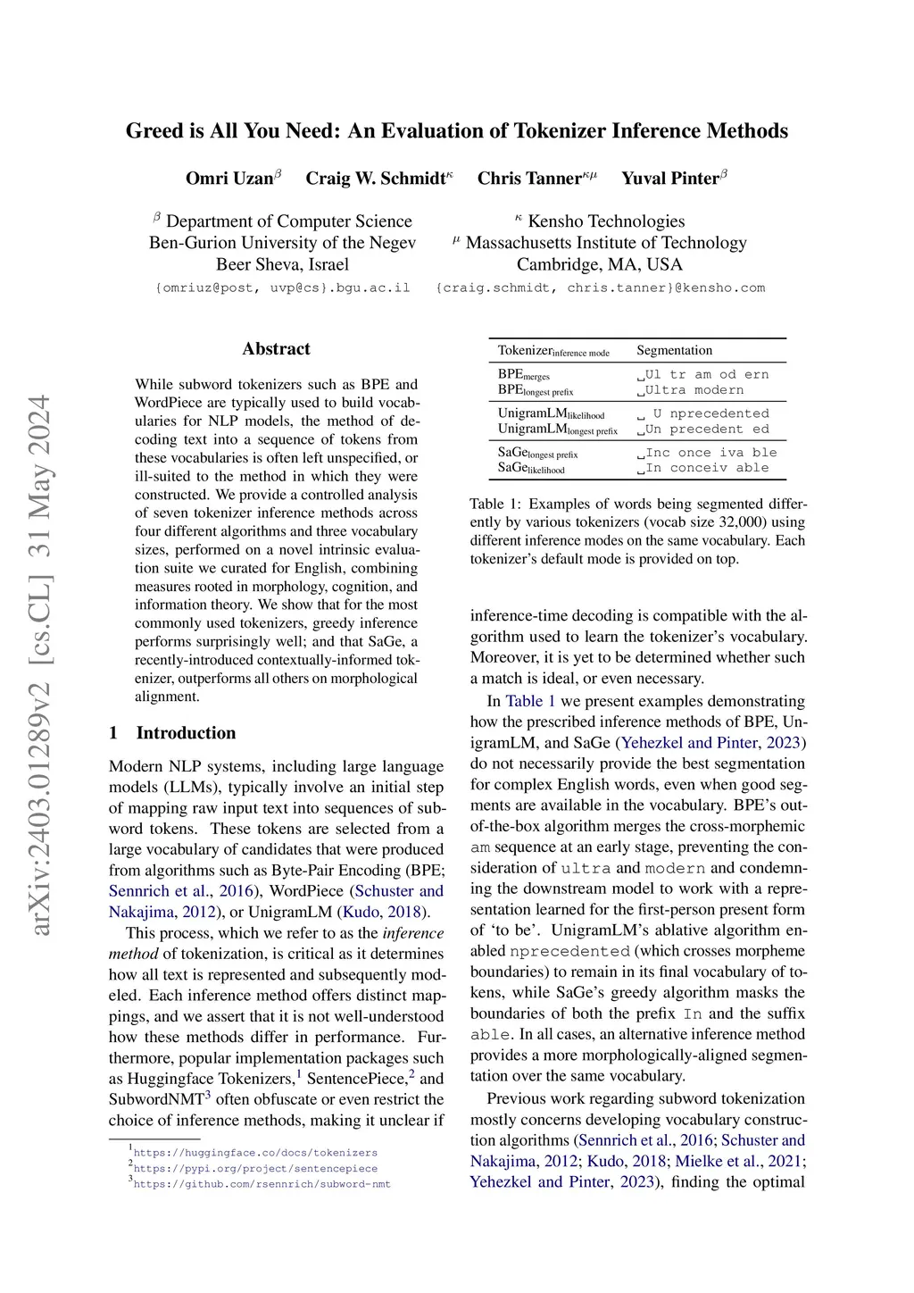 Greed is All You Need: An Evaluation of Tokenizer Inference Methods