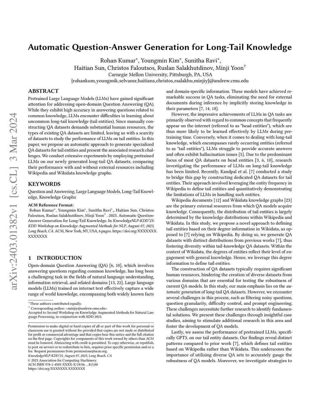 Automatic Question-Answer Generation for Long-Tail Knowledge