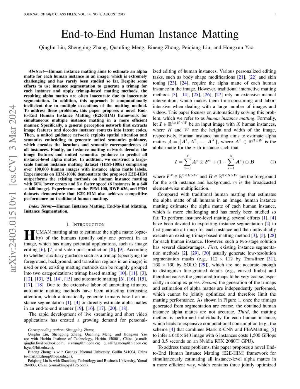 End-to-End Human Instance Matting