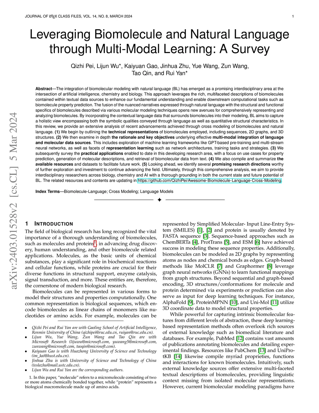 Leveraging Biomolecule and Natural Language through Multi-Modal Learning: A Survey