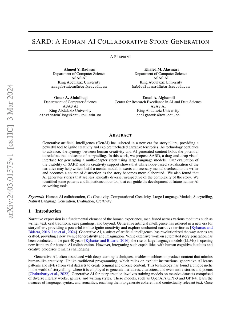 SARD: A Human-AI Collaborative Story Generation