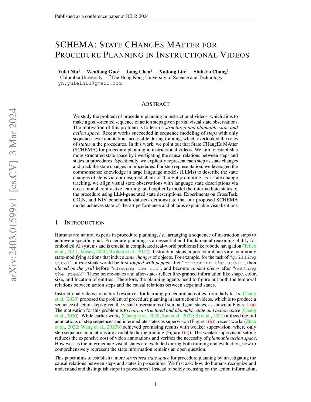 SCHEMA: State CHangEs MAtter for Procedure Planning in Instructional