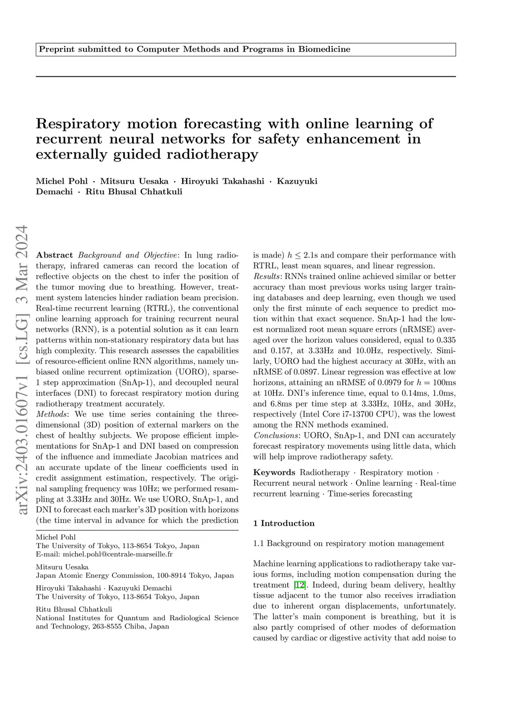 Real-time respiratory motion forecasting with online learning of recurrent neural networks for accurate targeting in externally guided radiotherapy