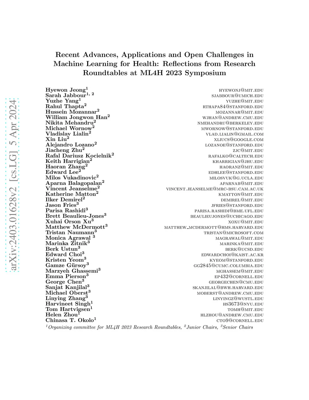 for Health: Reflections from Research Roundtables at ML4H 2023 Symposium