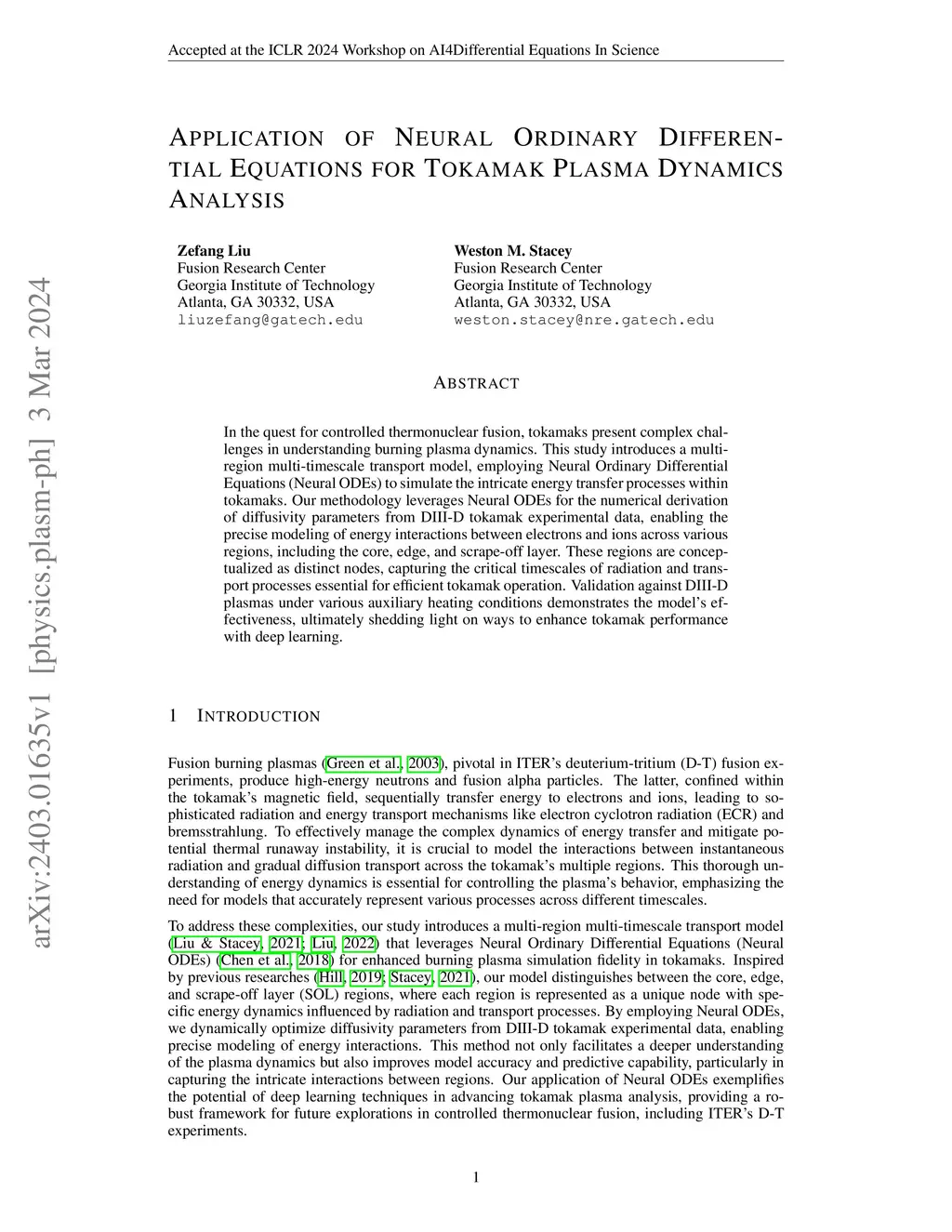 In the quest for controlled thermonuclear fusion, tokamaks present complex challenges in understanding burning plasma dynamics. This study introduces a multi-region multi-timescale transport model, employing Neural Ordinary Differential Equations (Neural ODEs) to simulate the intricate energy transfer processes within tokamaks. Our methodology leverages Neural ODEs for the numerical derivation of diffusivity parameters from DIII-D tokamak experimental data, enabling the precise modeling of energy interactions between electrons and ions across various regions, including the core, edge, and scrape-off layer. These regions are conceptualized as distinct nodes, capturing the critical timescales of radiation and transport processes essential for efficient tokamak operation. Validation against DIII-D plasmas under various auxiliary heating conditions demonstrates the model's effectiveness, ultimately shedding light on ways to enhance tokamak performance with deep learning.
