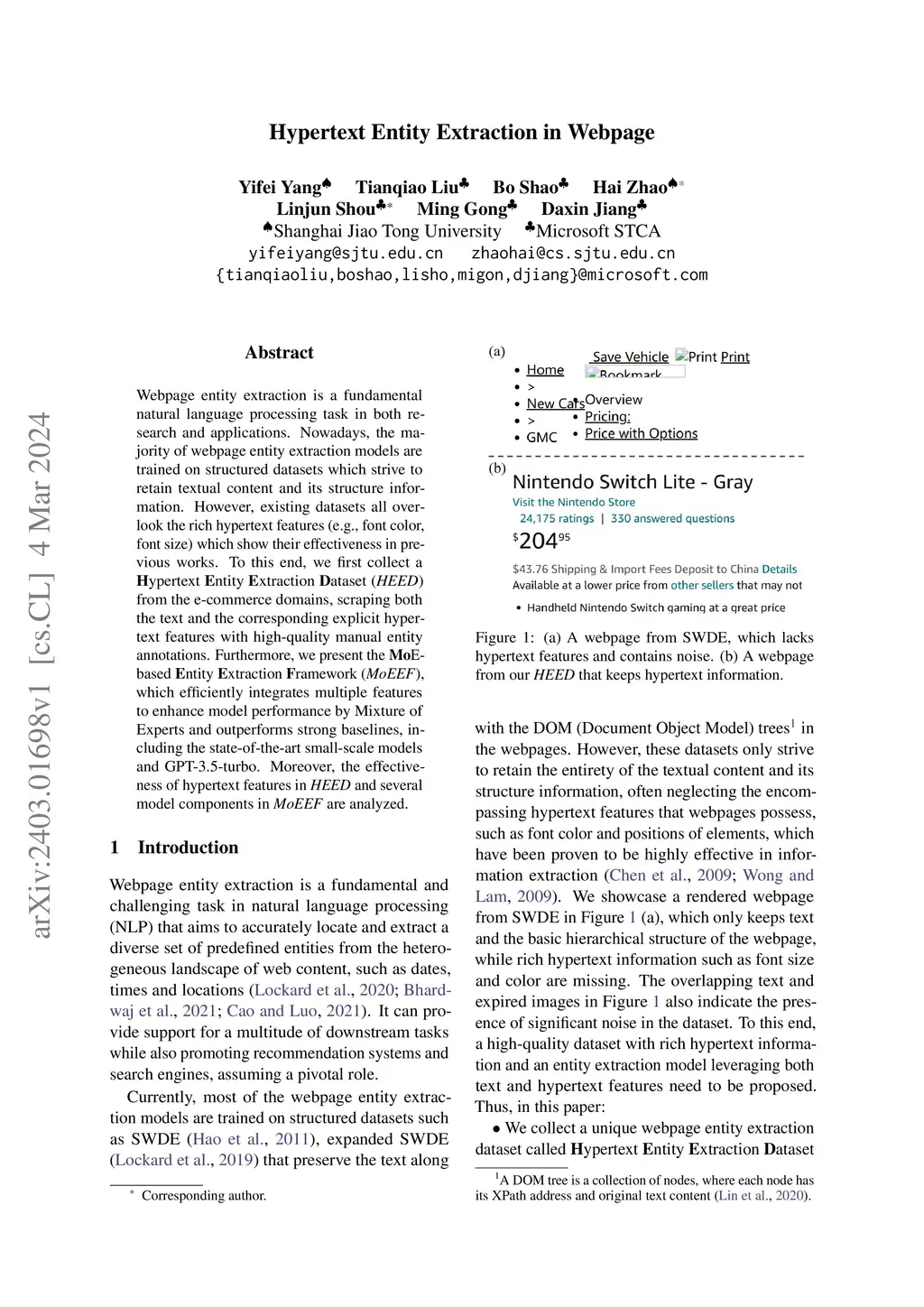 Hypertext Entity Extraction in Webpage