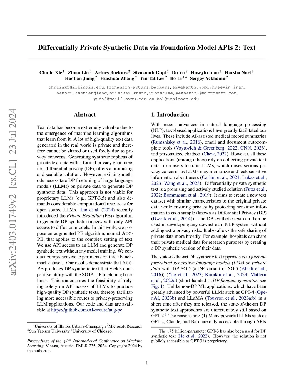 Differentially Private Synthetic Data via Foundation Model APIs 2: Text