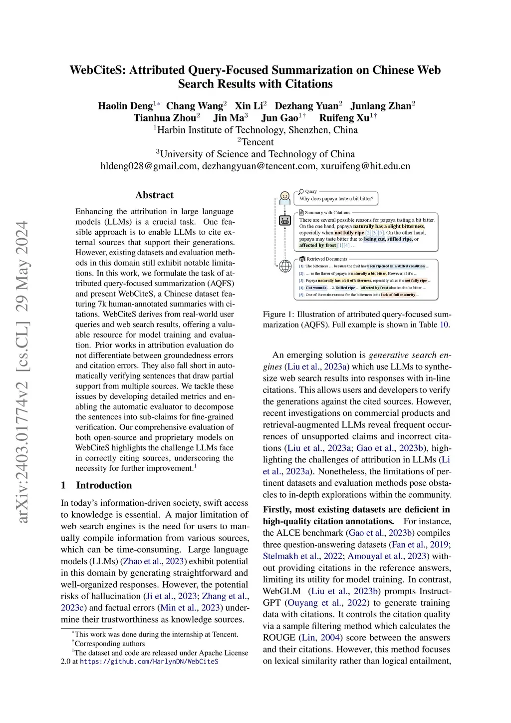 WebCiteS: Attributed Query-Focused Summarization on Chinese Web Search