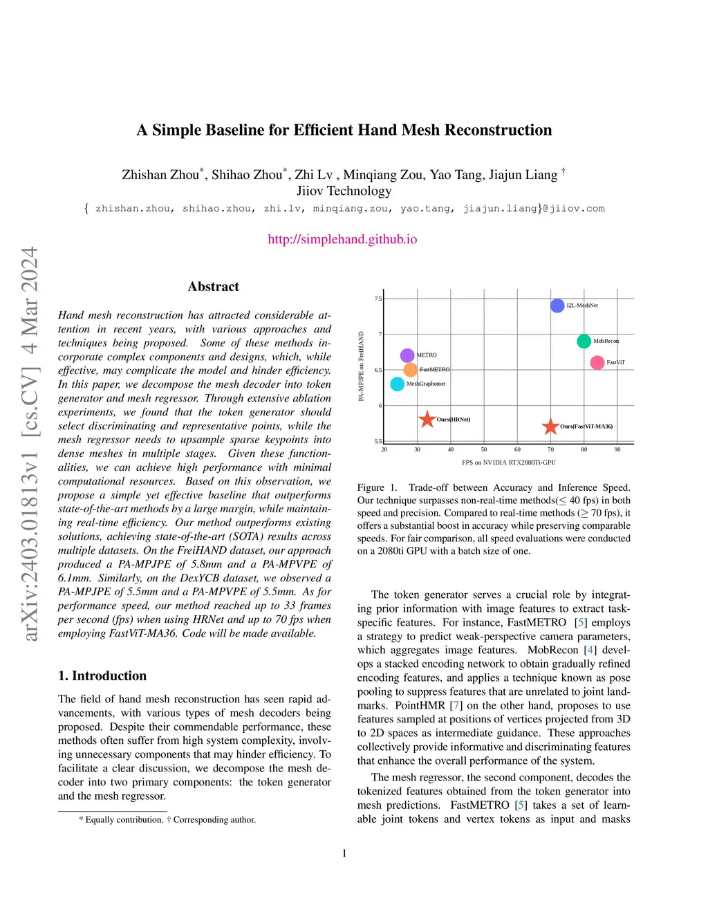 A Simple Baseline for Efficient Hand Mesh Reconstruction