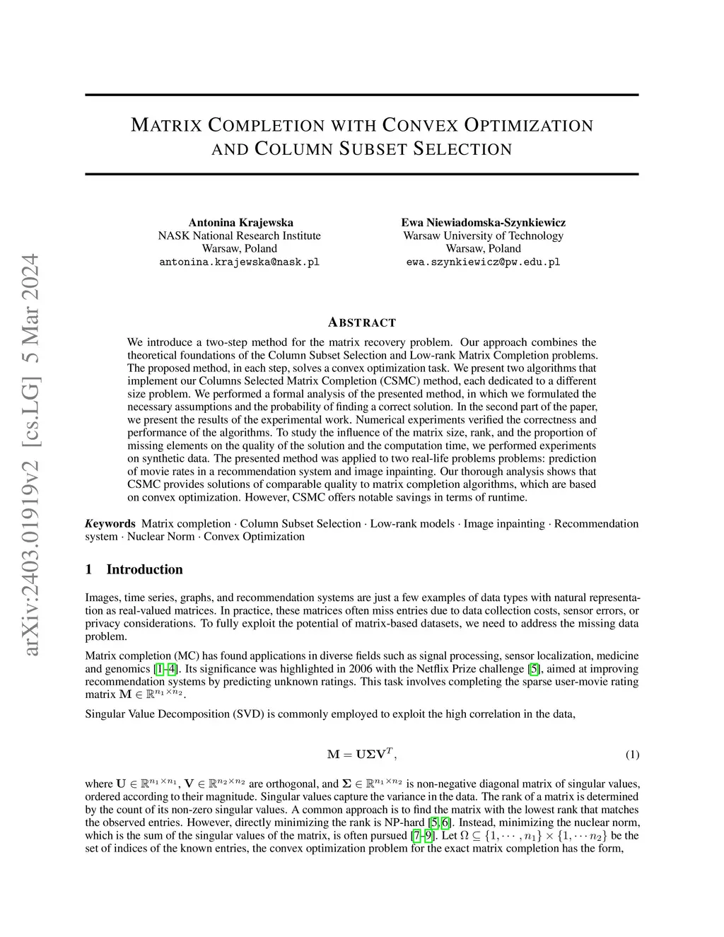 Randomized Approach to Matrix Completion: Applications in Collaborative Filtering and Image Inpainting