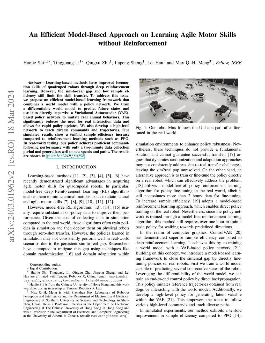 An Efficient Model-Based Approach on Learning Agile Motor Skills without