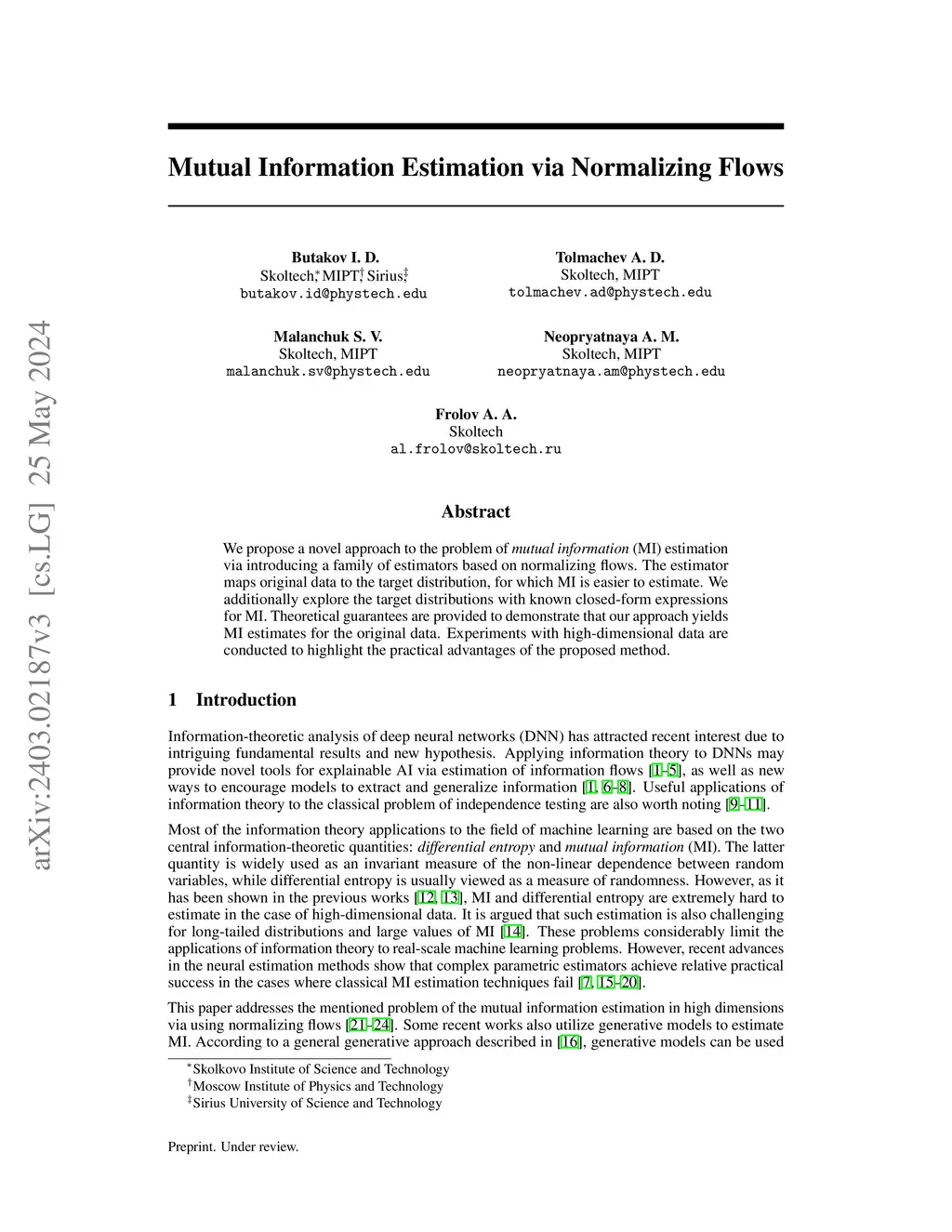We propose a novel approach to the problem of mutual information (MI) estimation via introducing a family of estimators based on normalizing flows. The estimator maps original data to the target distribution, for which MI is easier to estimate. We additionally explore the target distributions with known closed-form expressions for MI. Theoretical guarantees are provided to demonstrate that our approach yields MI estimates for the original data. Experiments with high-dimensional data are conducted to highlight the practical advantages of the proposed method.