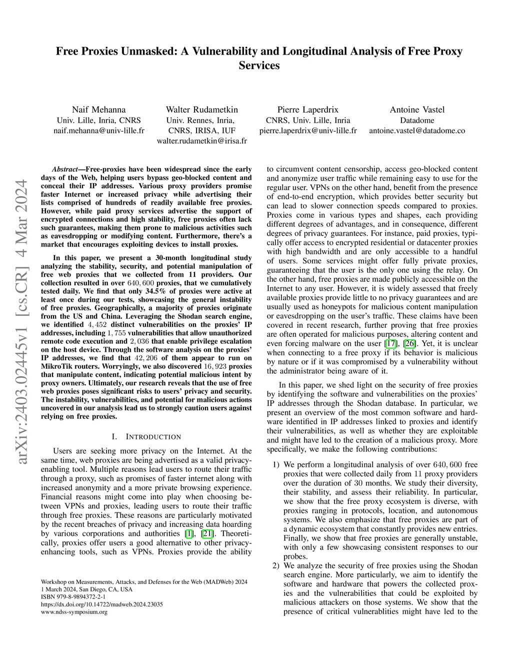 Free Proxies Unmasked: A Vulnerability and Longitudinal Analysis of Free