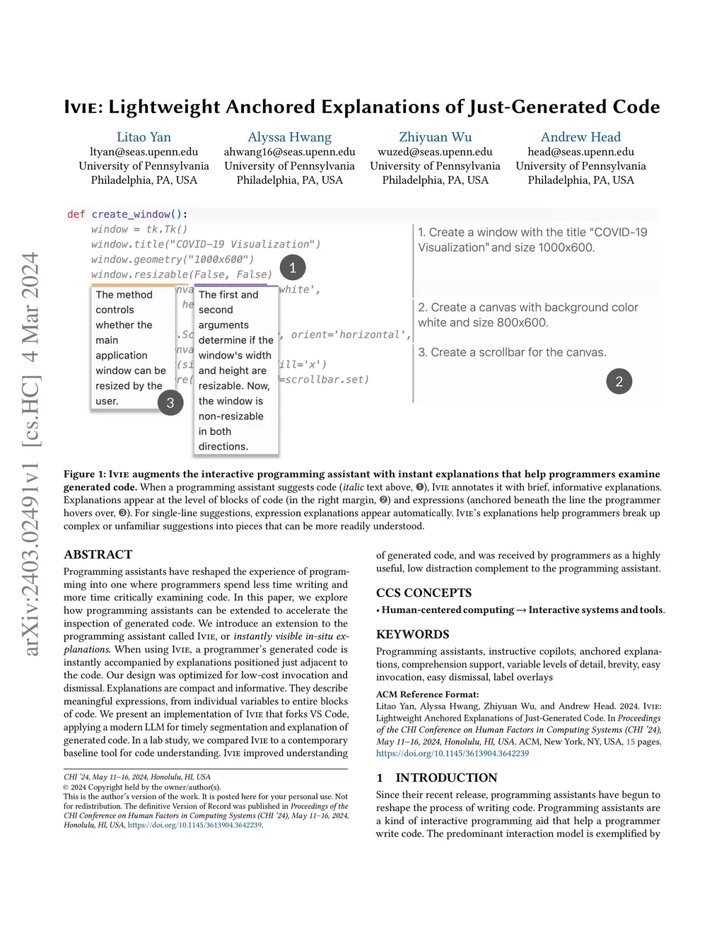 Ivie: Lightweight Anchored Explanations of Just-Generated Code