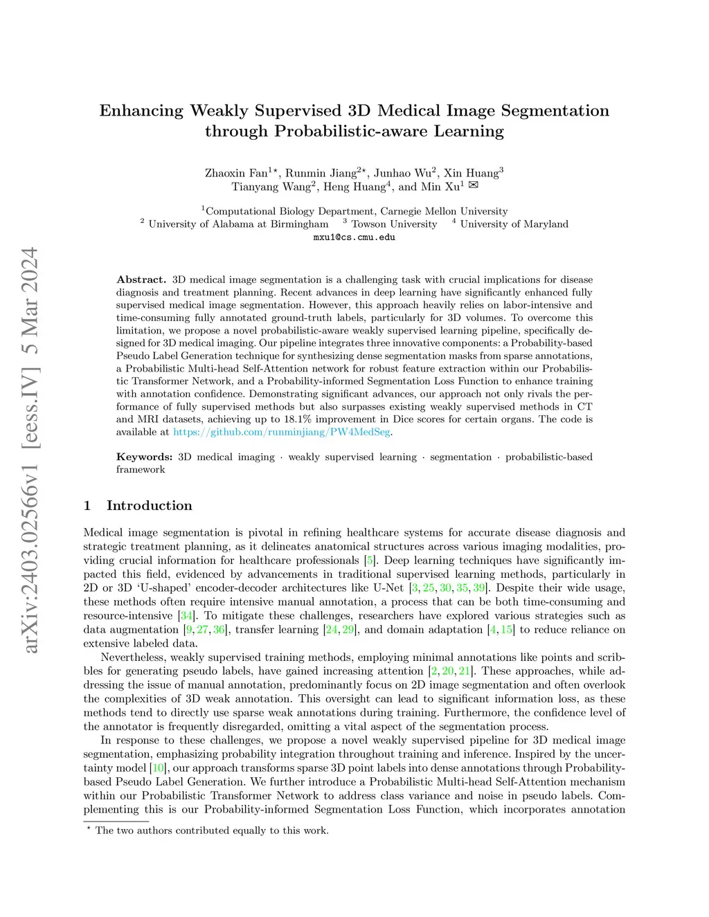 Enhancing Weakly Supervised 3D Medical Image Segmentation through Probabilistic-aware Learning