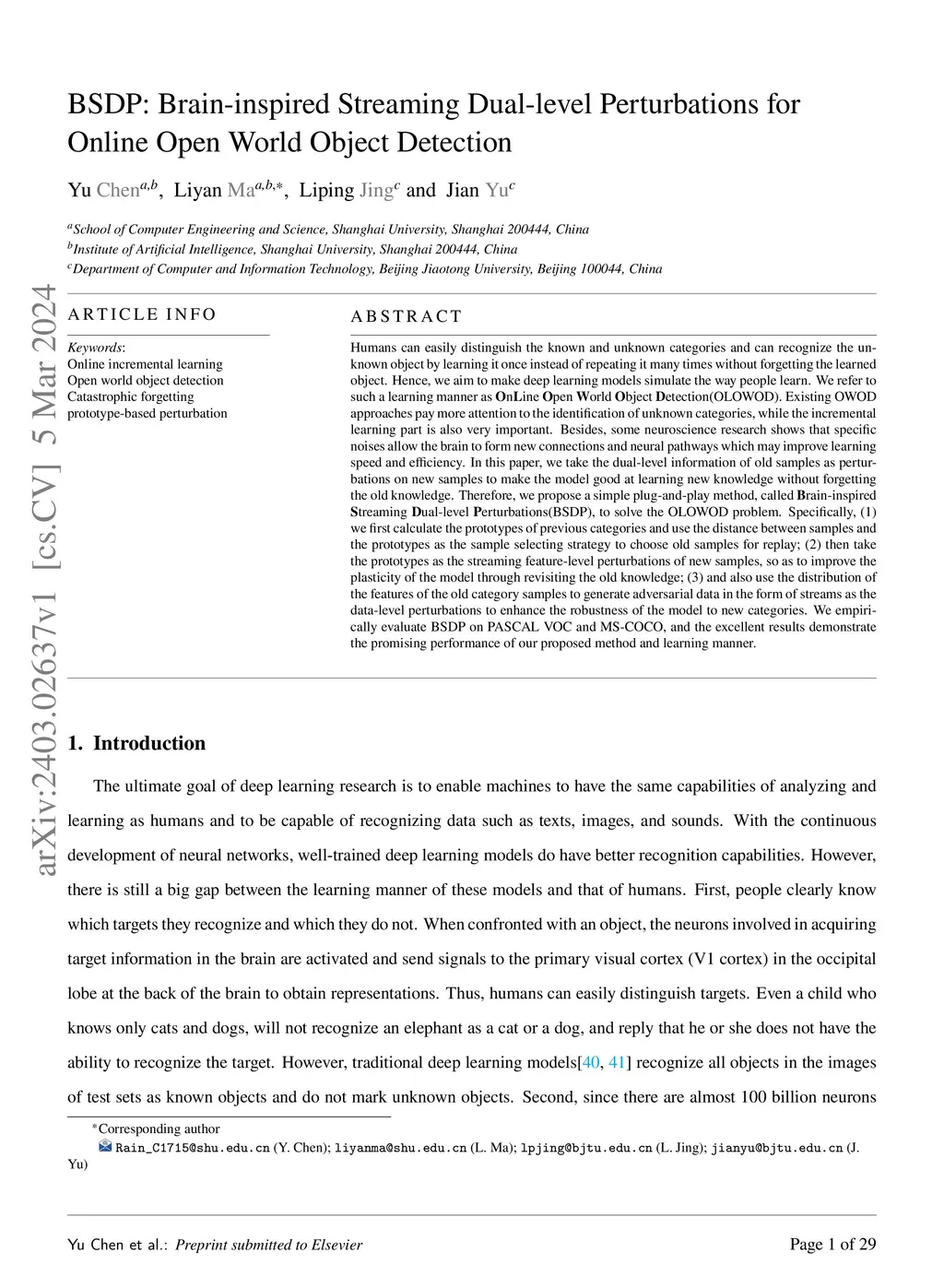 BSDP: Brain-inspired Streaming Dual-level Perturbations for Online Open