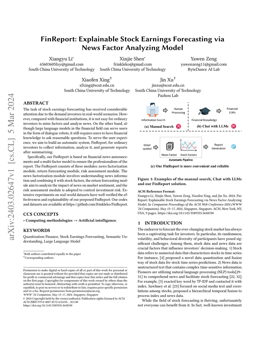 FinReport: Explainable Stock Earnings Forecasting via News Factor