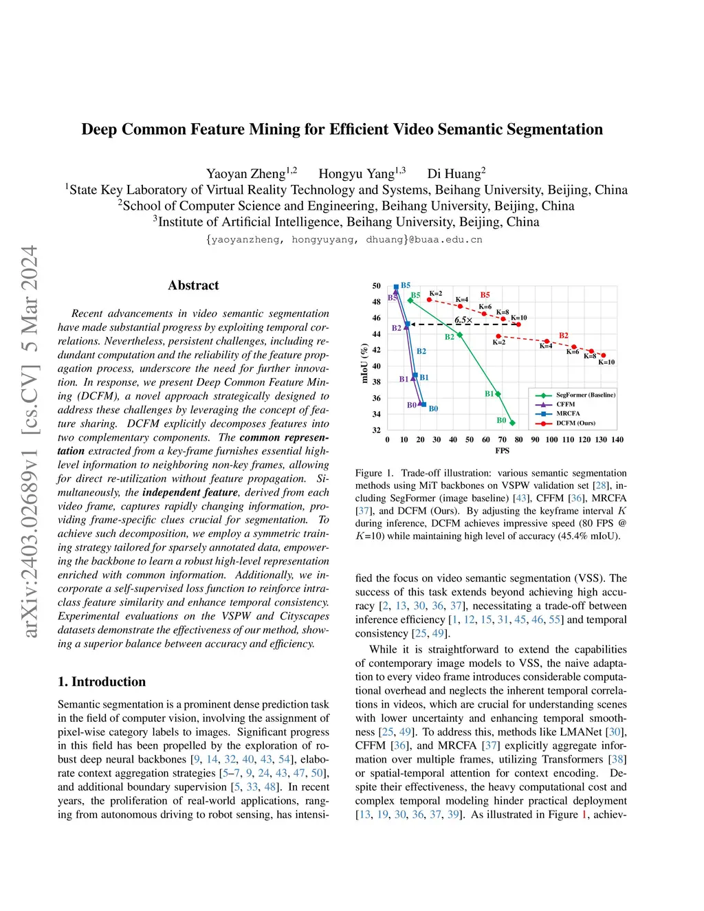 Deep Common Feature Mining for Efficient Video Semantic Segmentation