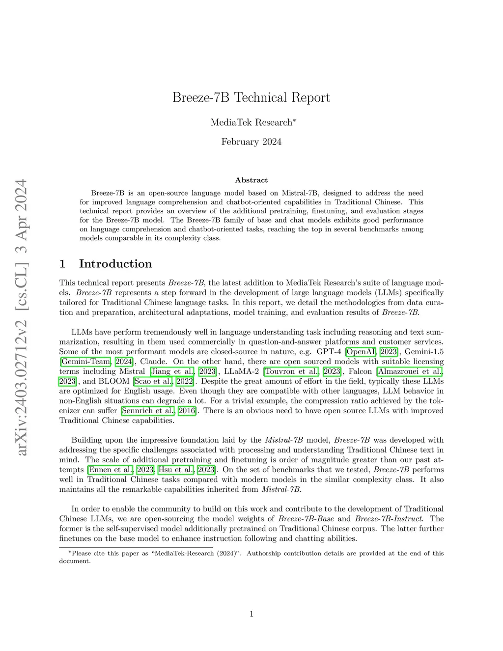 Breeze-7B Technical Report