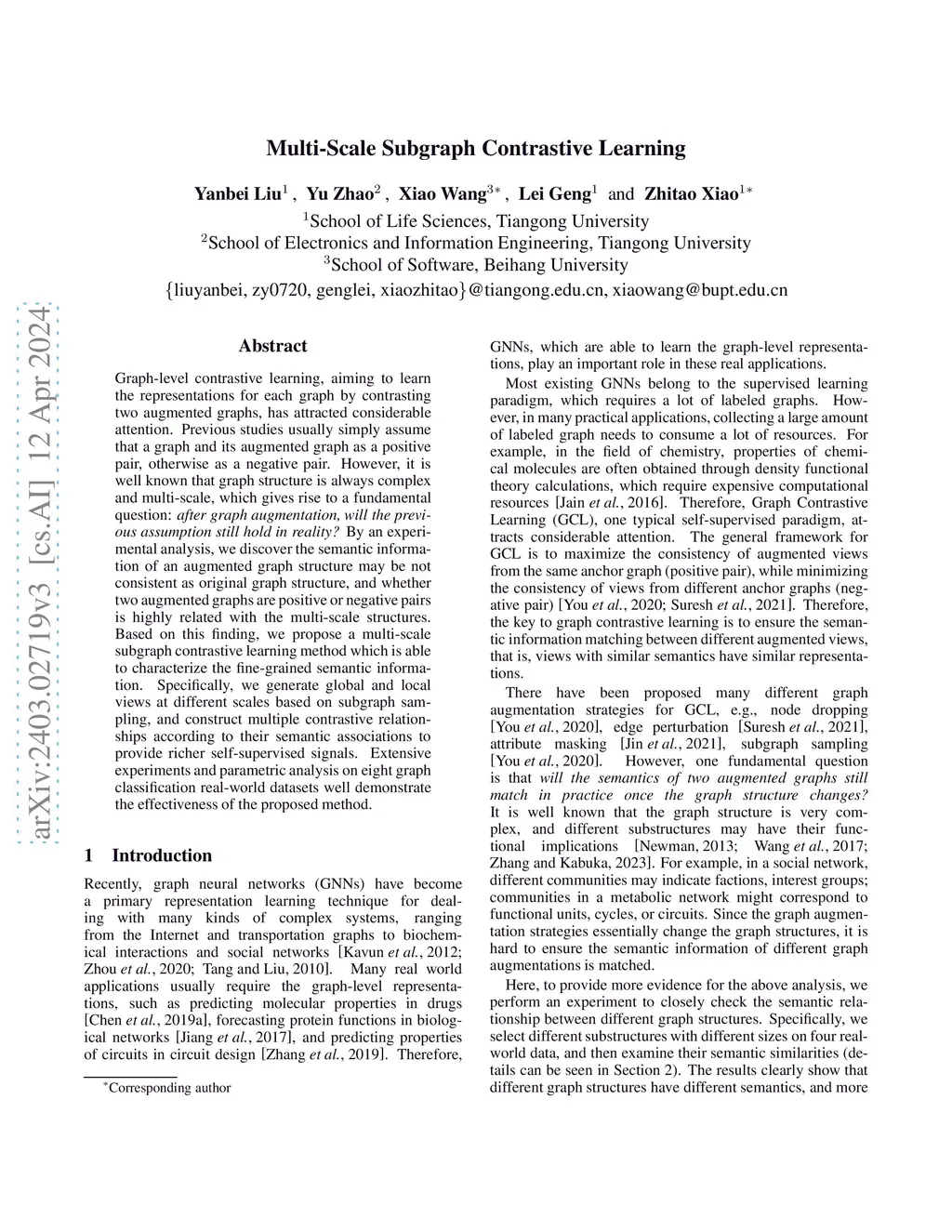 Graph-level contrastive learning, aiming to learn the representations for each graph by contrasting two augmented graphs, has attracted considerable attention. Previous studies usually simply assume that a graph and its augmented graph as a positive pair, otherwise as a negative pair. However, it is well known that graph structure is always complex and multi-scale, which gives rise to a fundamental question: after graph augmentation, will the previous assumption still hold in reality? By an experimental analysis, we discover the semantic information of an augmented graph structure may be not consistent as original graph structure, and whether two augmented graphs are positive or negative pairs is highly related with the multi-scale structures. Based on this finding, we propose a multi-scale subgraph contrastive learning architecture which is able to characterize the fine-grained semantic information. Specifically, we generate global and local views at different scales based on subgraph sampling, and construct multiple contrastive relationships according to their semantic associations to provide richer self-supervised signals. Extensive experiments and parametric analyzes on eight graph classification real-world datasets well demonstrate the effectiveness of the proposed method.