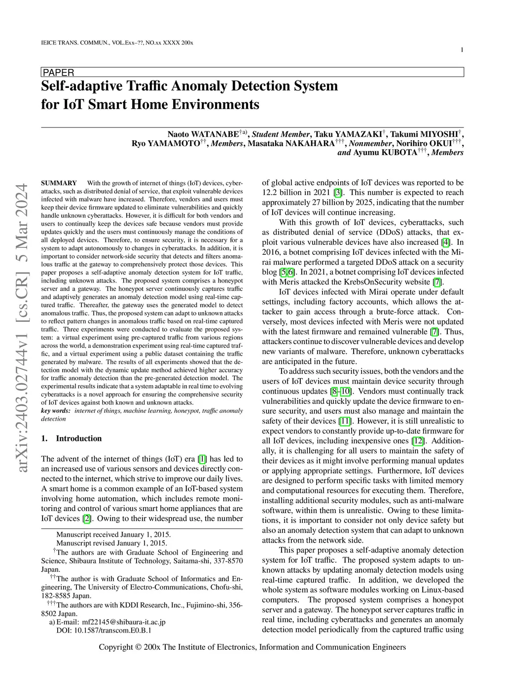 Self-adaptive Traffic Anomaly Detection System for IoT Smart Home
