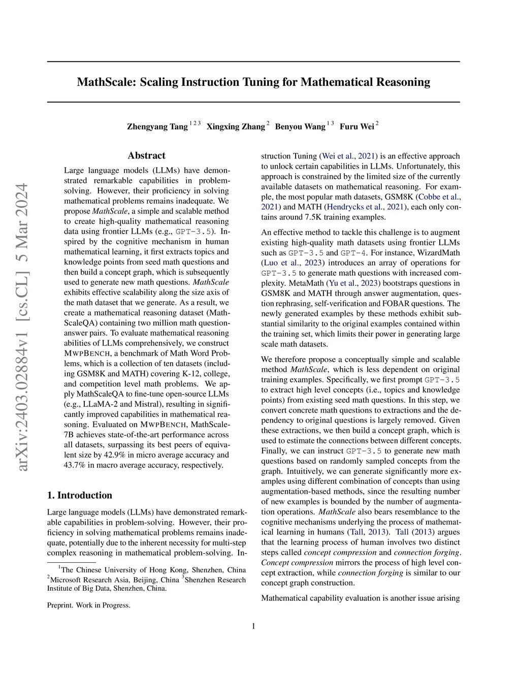 MathScale: Scaling Instruction Tuning for Mathematical Reasoning