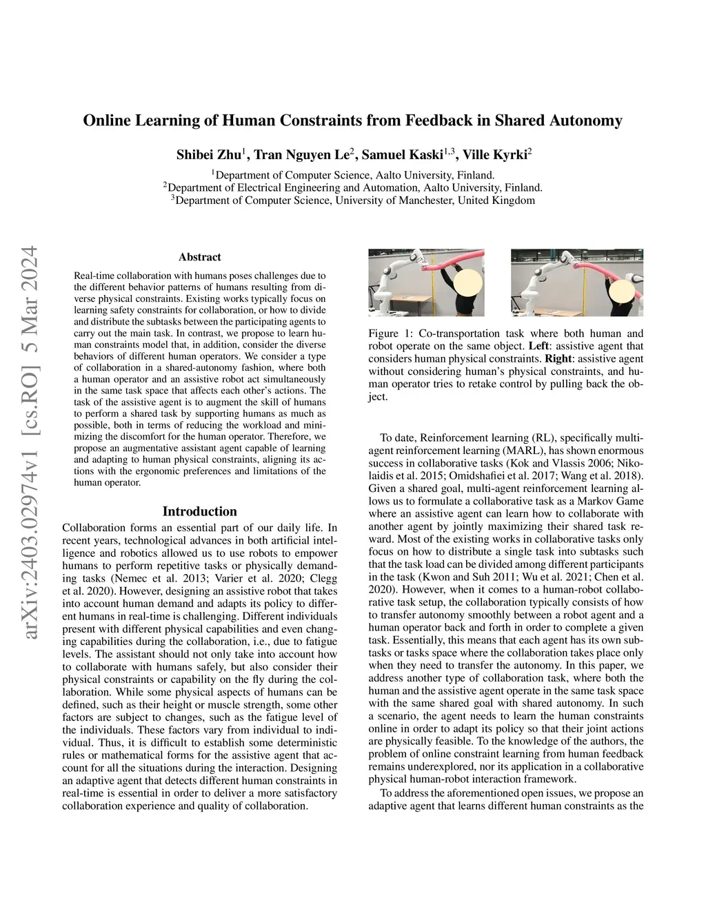 Real-time collaboration with humans poses challenges due to the different behavior patterns of humans resulting from diverse physical constraints. Existing works typically focus on learning safety constraints for collaboration, or how to divide and distribute the subtasks between the participating agents to carry out the main task. In contrast, we propose to learn a human constraints model that, in addition, considers the diverse behaviors of different human operators. We consider a type of collaboration in a shared-autonomy fashion, where both a human operator and an assistive robot act simultaneously in the same task space that affects each other's actions. The task of the assistive agent is to augment the skill of humans to perform a shared task by supporting humans as much as possible, both in terms of reducing the workload and minimizing the discomfort for the human operator. Therefore, we propose an augmentative assistant agent capable of learning and adapting to human physical constraints, aligning its actions with the ergonomic preferences and limitations of the human operator.