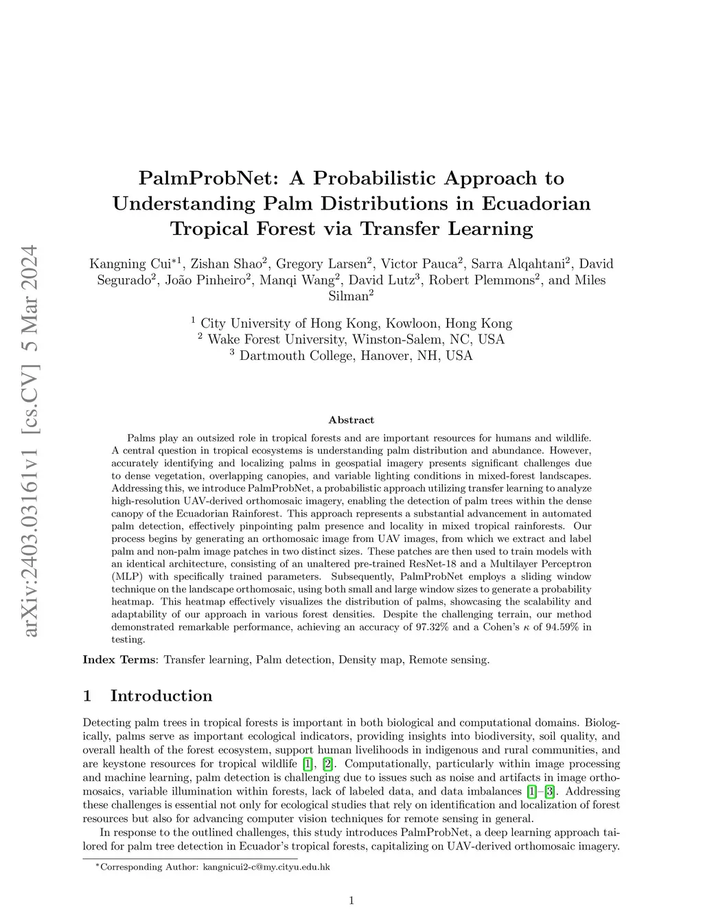 Distributions in Ecuadorian Tropical Forest via Transfer Learning