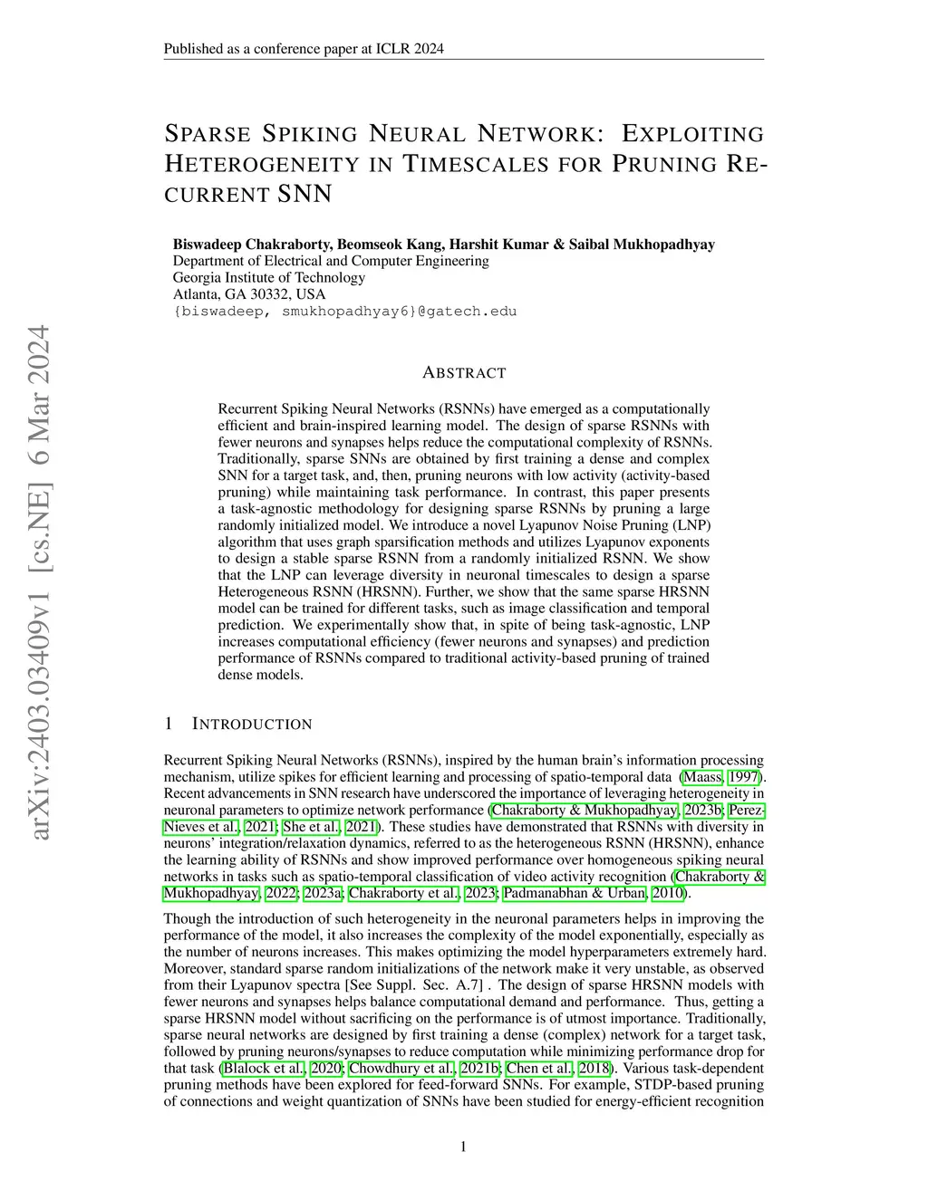 Sparse Spiking Neural Network: Exploiting Heterogeneity in Timescales