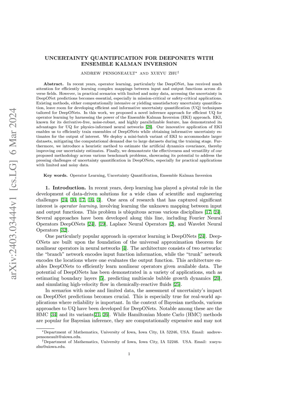 Uncertainty quantification for deeponets with ensemble kalman inversion