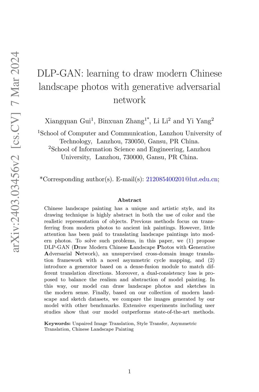 DLP-GAN: learning to draw modern Chinese landscape photos with