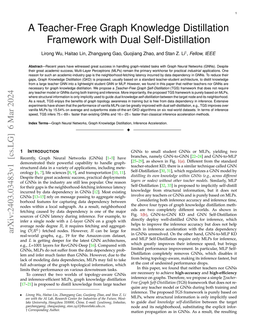 A Teacher-Free Graph Knowledge Distillation Framework with Dual