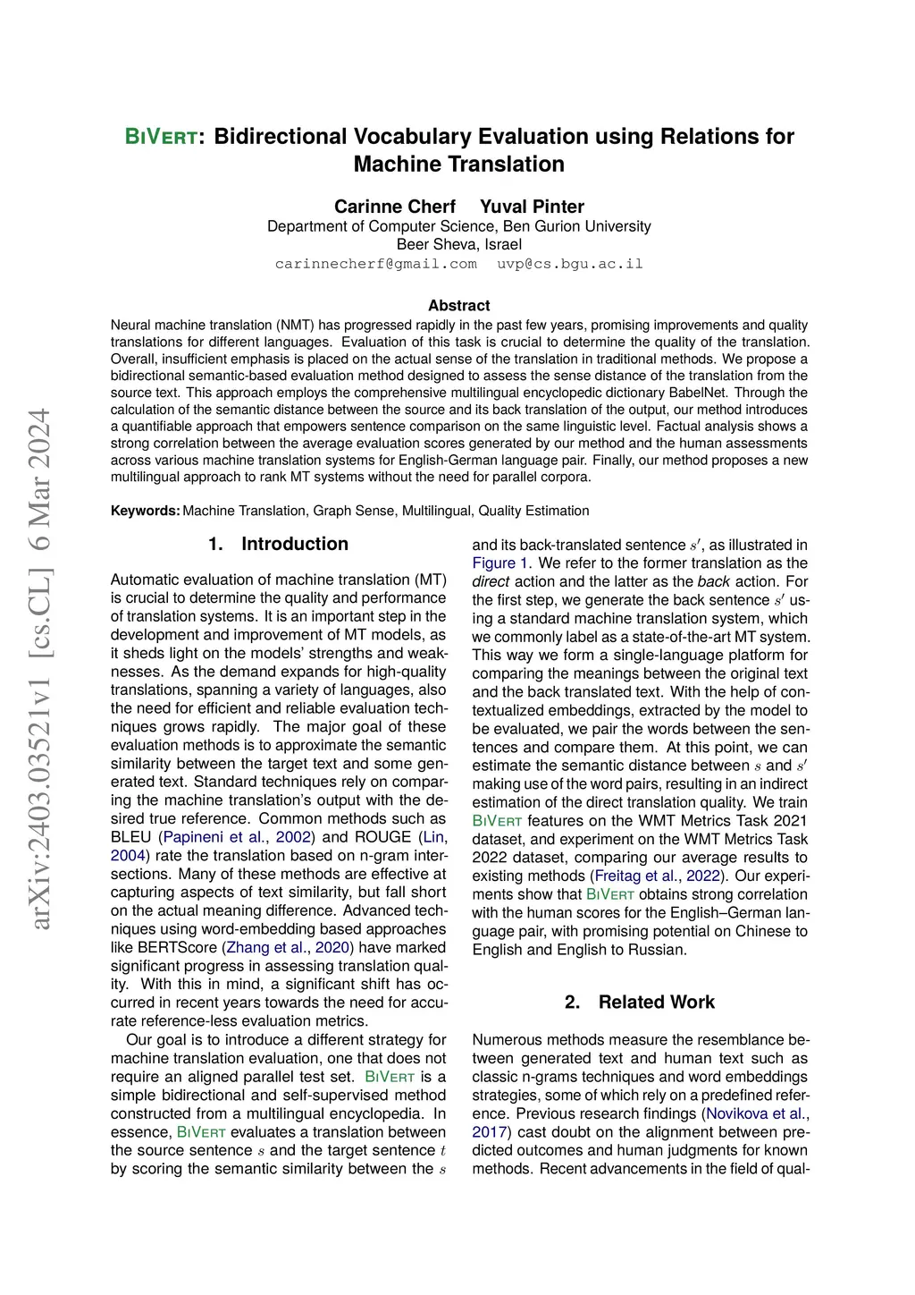 BiVert: Bidirectional Vocabulary Evaluation using Relations for Machine