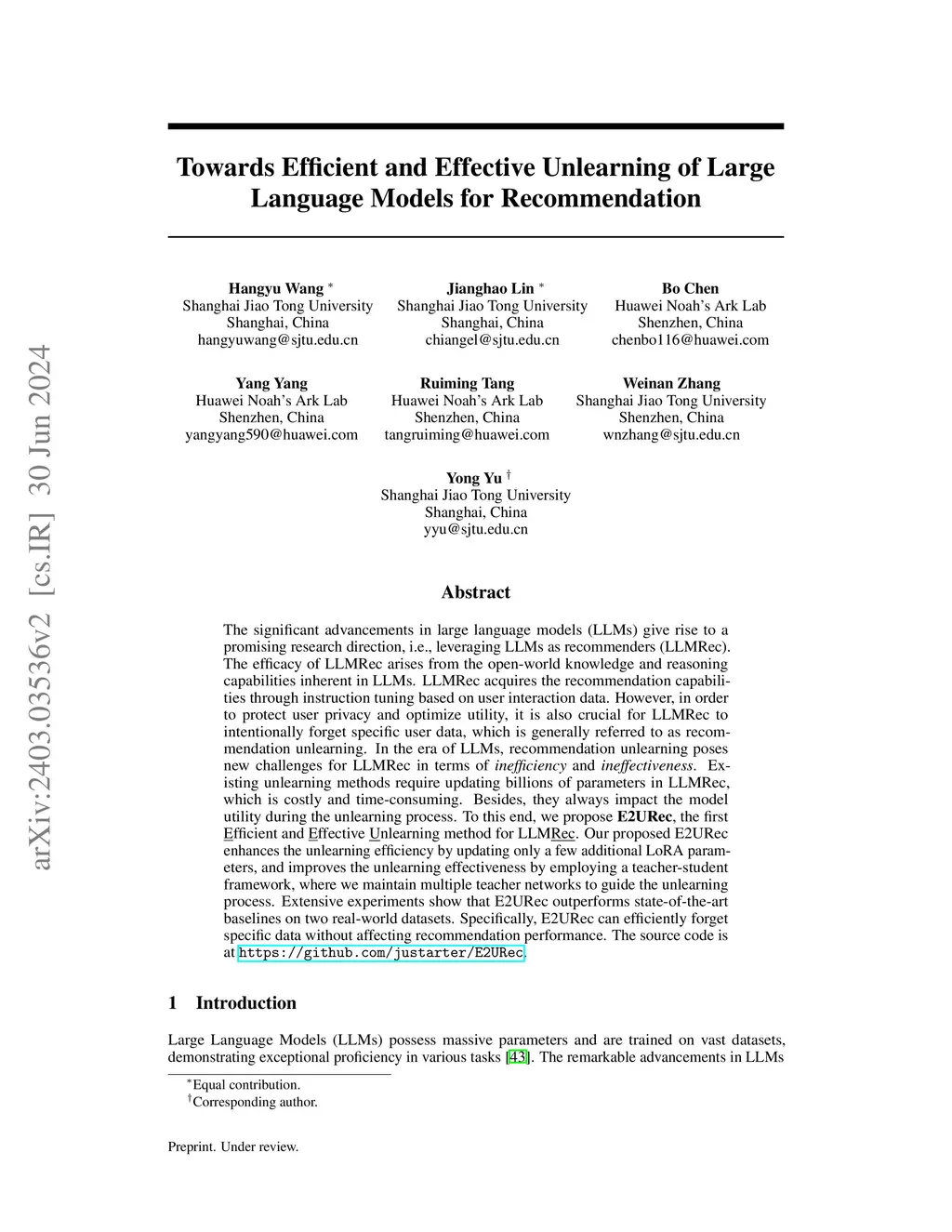 Towards Efficient and Effective Unlearning of Large Language Models for