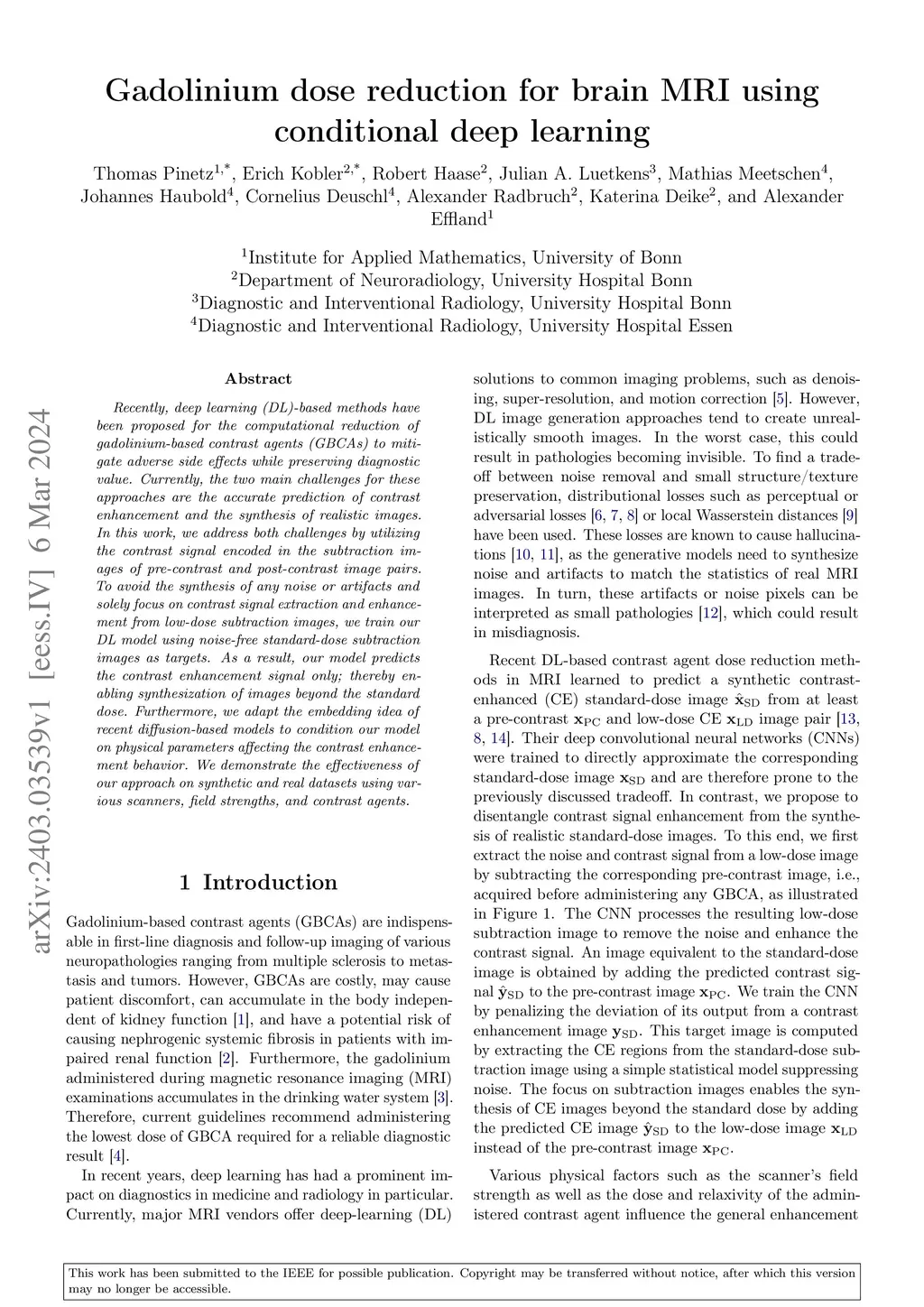 Gadolinium dose reduction for brain MRI using conditional deep learning