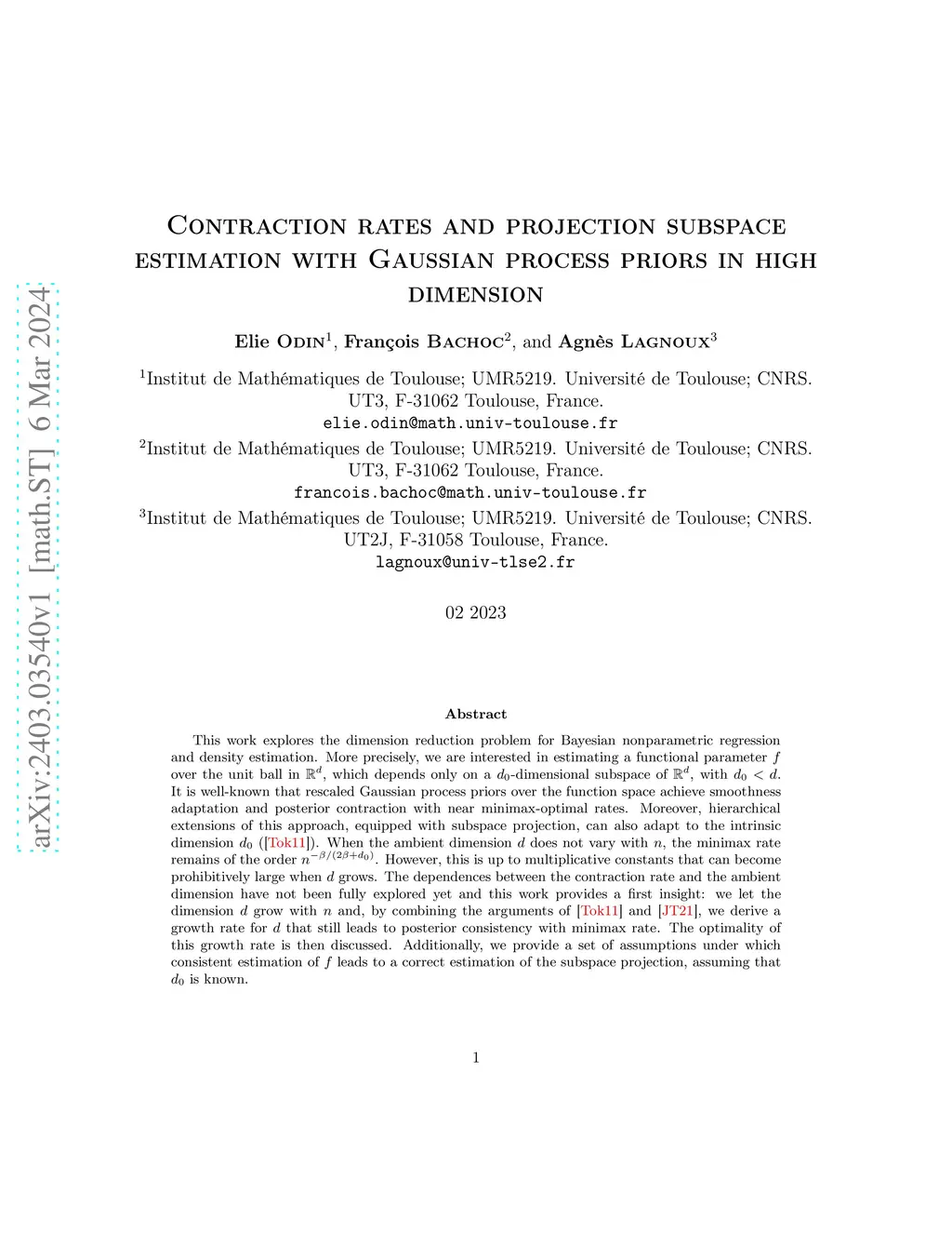 This work explores the dimension reduction problem for Bayesian nonparametric regression and density estimation. More precisely, we are interested in estimating a functional parameter over the unit ball in , which depends only on a -dimensional subspace of , with .It is well-known that rescaled Gaussian process priors over the function space achieve smoothness adaptation and posterior contraction with near minimax-optimal rates. Moreover, hierarchical extensions of this approach, equipped with subspace projection, can also adapt to the intrinsic dimension (\cite{Tokdar2011DimensionAdapt}).When the ambient dimension does not vary with , the minimax rate remains of the order .%When does not vary with , the order of the minimax rate remains the same regardless of the ambient dimension . However, this is up to multiplicative constants that can become prohibitively large when grows. The dependences between the contraction rate and the ambient dimension have not been fully explored yet and this work provides a first insight: we let the dimension grow with and, by combining the arguments of \cite{Tokdar2011DimensionAdapt} and \cite{Jiang2021VariableSelection}, we derive a growth rate for that still leads to posterior consistency with minimax rate.The optimality of this growth rate is then discussed.Additionally, we provide a set of assumptions under which consistent estimation of leads to a correct estimation of the subspace projection, assuming that is known.