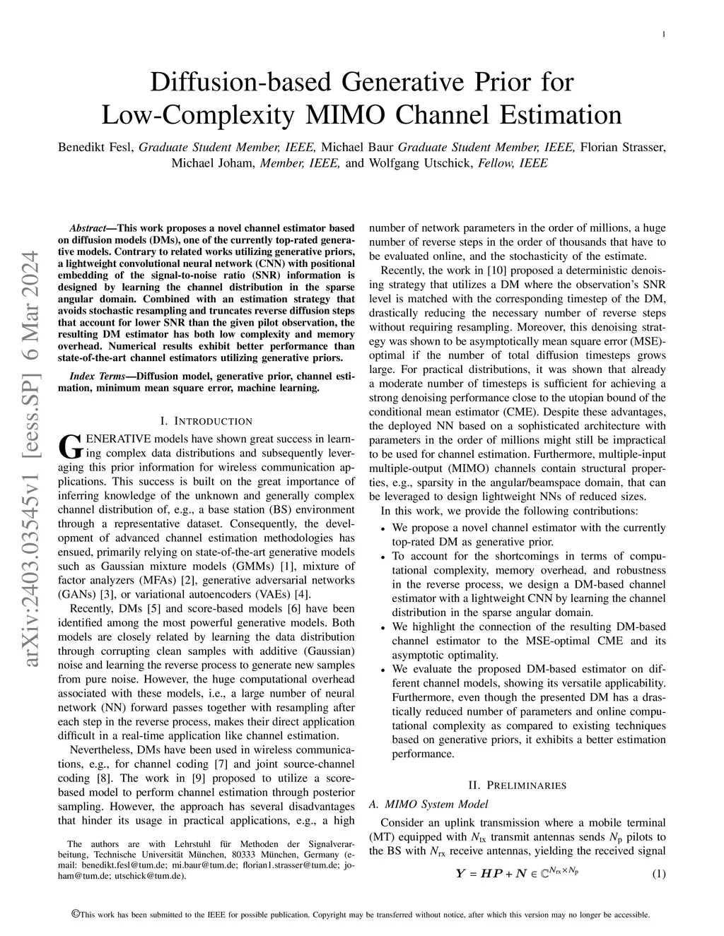 Diffusion-based Generative Prior for Low-Complexity MIMO Channel