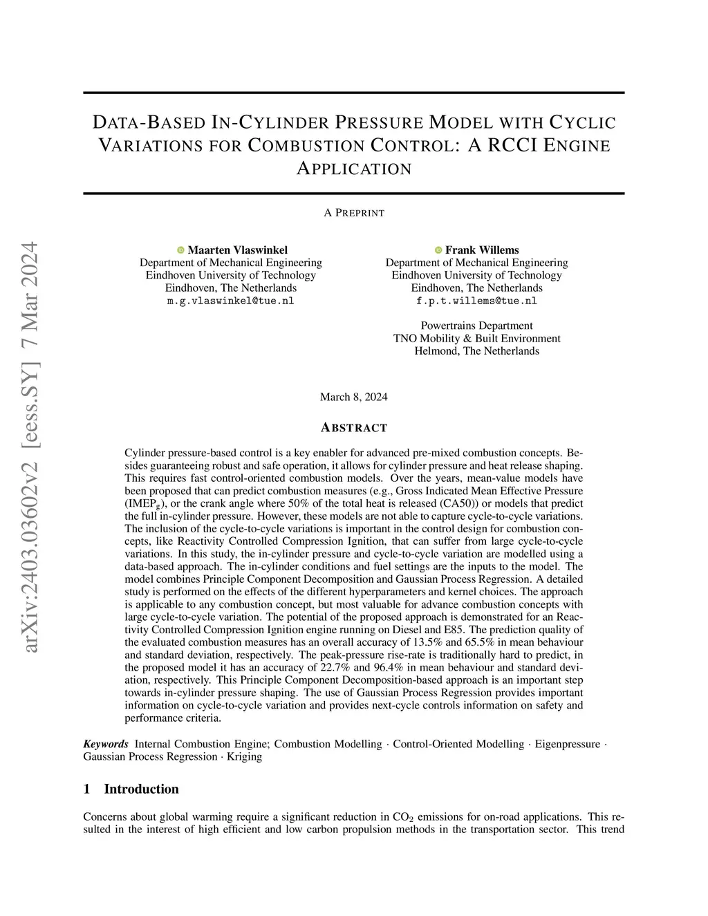 Combustion Control: A RCCI Engine Application