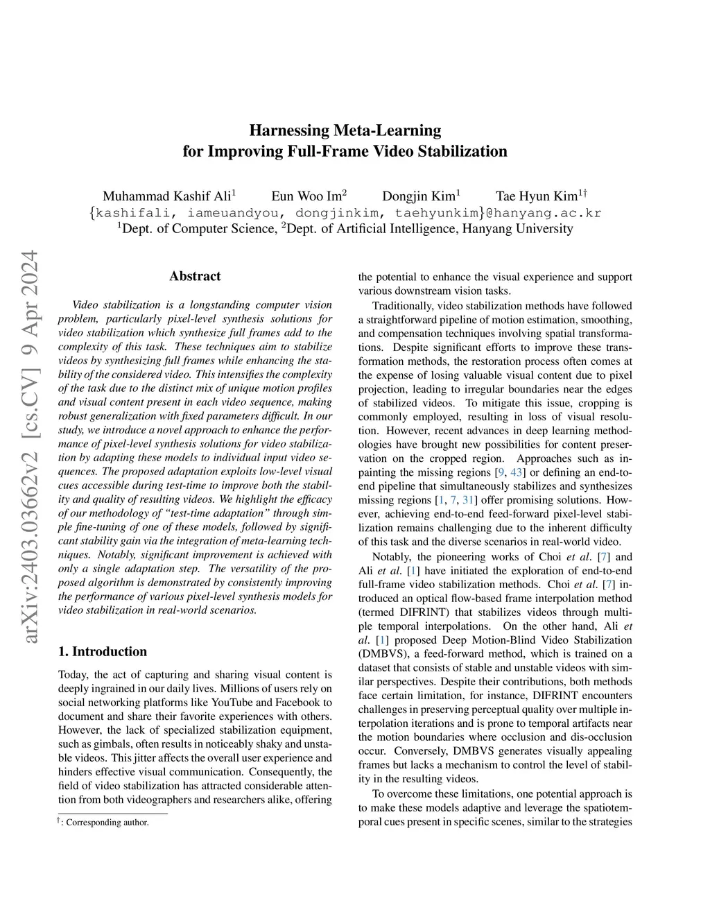 Harnessing Meta-Learning for Improving Full-Frame Video Stabilization