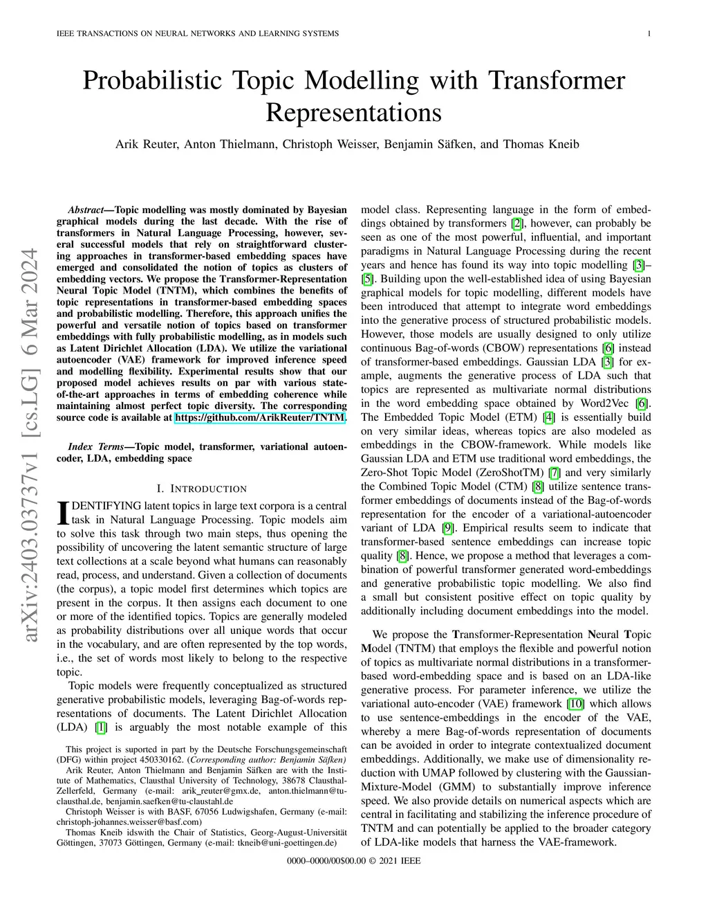 Probabilistic Topic Modelling with Transformer Representations