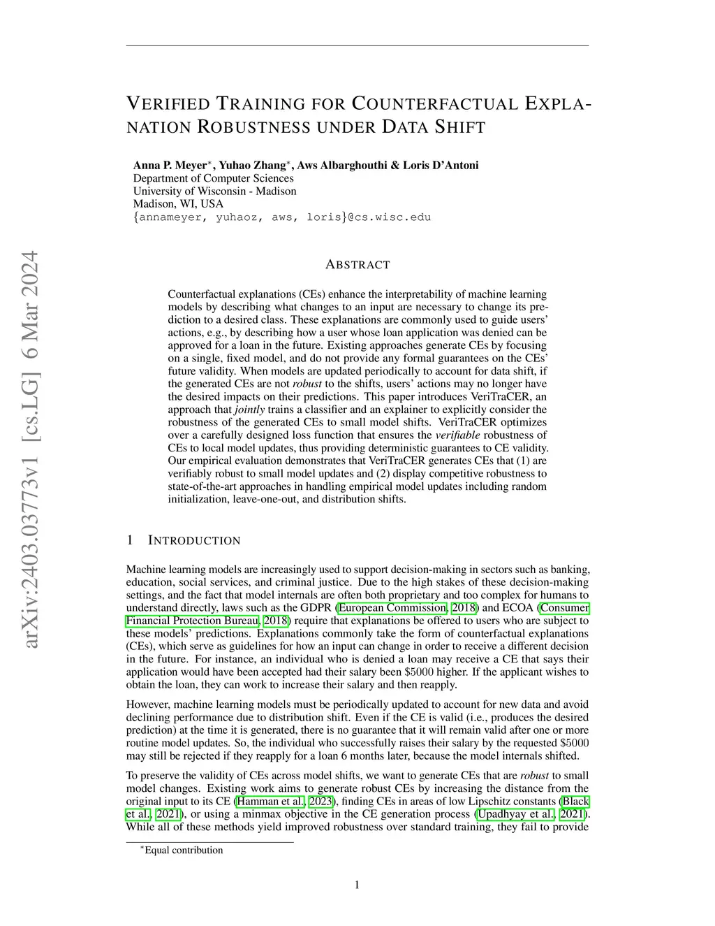 Counterfactual explanations (CEs) enhance the interpretability of machine learning models by describing what changes to an input are necessary to change its prediction to a desired class. These explanations are commonly used to guide users' actions, e.g., by describing how a user whose loan application was denied can be approved for a loan in the future. Existing approaches generate CEs by focusing on a single, fixed model, and do not provide any formal guarantees on the CEs' future validity. When models are updated periodically to account for data shift, if the generated CEs are not robust to the shifts, users' actions may no longer have the desired impacts on their predictions. This paper introduces VeriTraCER, an approach that jointly trains a classifier and an explainer to explicitly consider the robustness of the generated CEs to small model shifts. VeriTraCER optimizes over a carefully designed loss function that ensures the verifiable robustness of CEs to local model updates, thus providing deterministic guarantees to CE validity. Our empirical evaluation demonstrates that VeriTraCER generates CEs that (1) are verifiably robust to small model updates and (2) display competitive robustness to state-of-the-art approaches in handling empirical model updates including random initialization, leave-one-out, and distribution shifts.