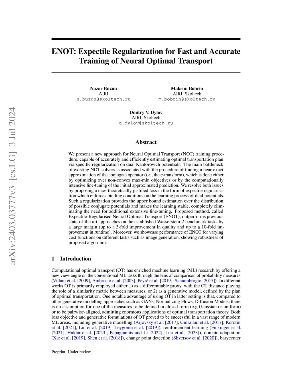 We present a new approach for Neural Optimal Transport (NOT) training procedure, capable of accurately and efficiently estimating optimal transportation plan via specific regularization on dual Kantorovich potentials. The main bottleneck of existing NOT solvers is associated with the procedure of finding a near-exact approximation of the conjugate operator (i.e., the c-transform), which is done either by optimizing over non-convex max-min objectives or by the computationally intensive fine-tuning of the initial approximated prediction. We resolve both issues by proposing a new, theoretically justified loss in the form of expectile regularisation which enforces binding conditions on the learning process of dual potentials. Such a regularization provides the upper bound estimation over the distribution of possible conjugate potentials and makes the learning stable, completely eliminating the need for additional extensive fine-tuning. Proposed method, called Expectile-Regularised Neural Optimal Transport (ENOT), outperforms previous state-of-the-art approaches on the established Wasserstein-2 benchmark tasks by a large margin (up to a 3-fold improvement in quality and up to a 10-fold improvement in runtime). Moreover, we showcase performance of ENOT for varying cost functions on different tasks such as image generation, showing robustness of proposed algorithm. OTT-JAX library includes our implementation of ENOT algorithm https://ott-jax.readthedocs.io/en/latest/tutorials/ENOT.html