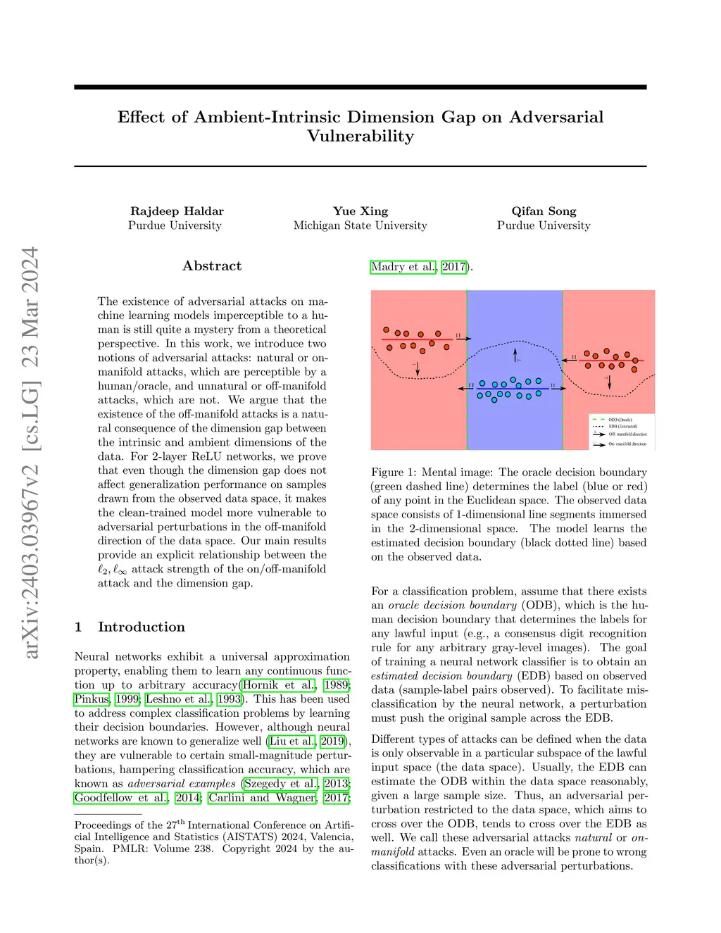 Effect of Ambient-Intrinsic Dimension Gap on Adversarial Vulnerability